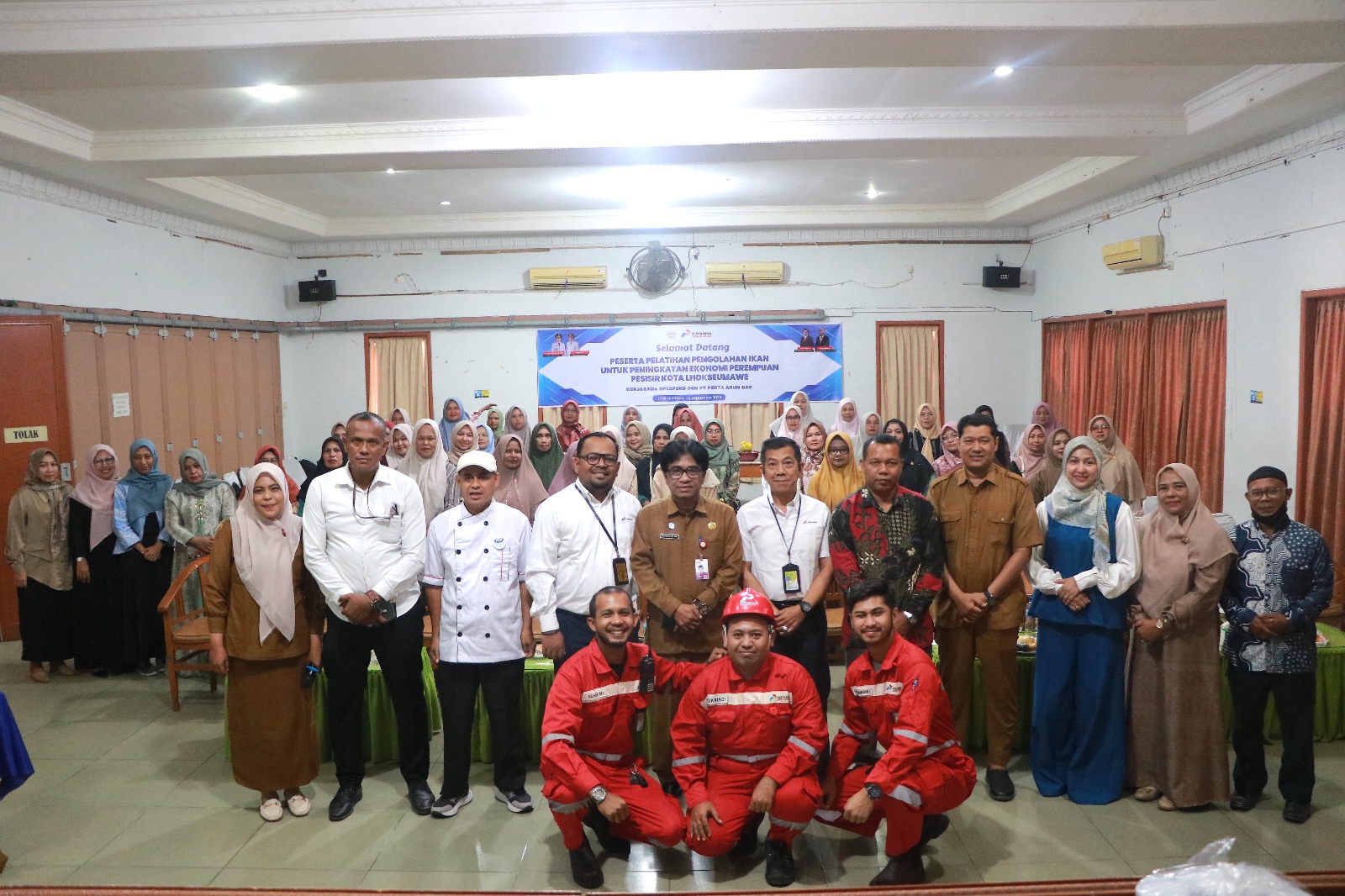 MERDEKABICARA.COM | LHOKSEUMAWE – PT Perta Arun Gas (PAG) bekerja sama dengan Dinas Pemberdayaan Perempuan, Perlindungan Anak, Pengendalian Penduduk, dan Keluarga Berencana (DP3AP2KB) Kota Lhokseumawe menggelar sosialisasi pengolahan ikan untuk peningkatan ekonomi perempuan pesisir Kota Lhokseumawe, di Gedung Hasbi Lhokseumawe pada Senin-Selasa, (1-2 September 2025).