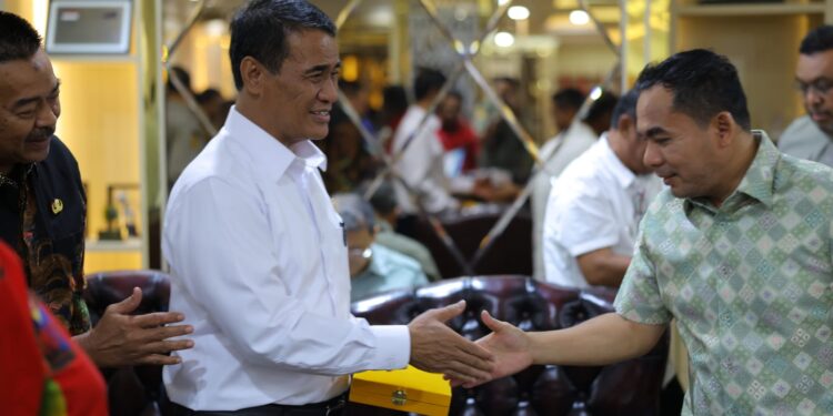 MERDEKABICARA.COM | JAKARTA – Wali Kota Lhokseumawe, Dr. Sayuti Abubakar, S.H., M.H., didampingi oleh Kepala Dinas Kelautan, Perikanan, Pertanian dan Pangan (DKPPP) Kota Lhokseumawe, Cut Elya Safitri, S.K.H., M.S.M., serta Kepala Bidang Pertanian dan Perkebunan Ira Handayani, S.TP., M.P., melakukan pertemuan dengan Menteri Pertanian Republik Indonesia, Andi Amran Sulaiman, di Ruang Kerja Menteri Pertanian, Jakarta, Kamis (9/10/2025). Pertemuan ini juga diikuti oleh sejumlah bupati dan wali kota lainnya dari berbagai daerah di Indonesia.