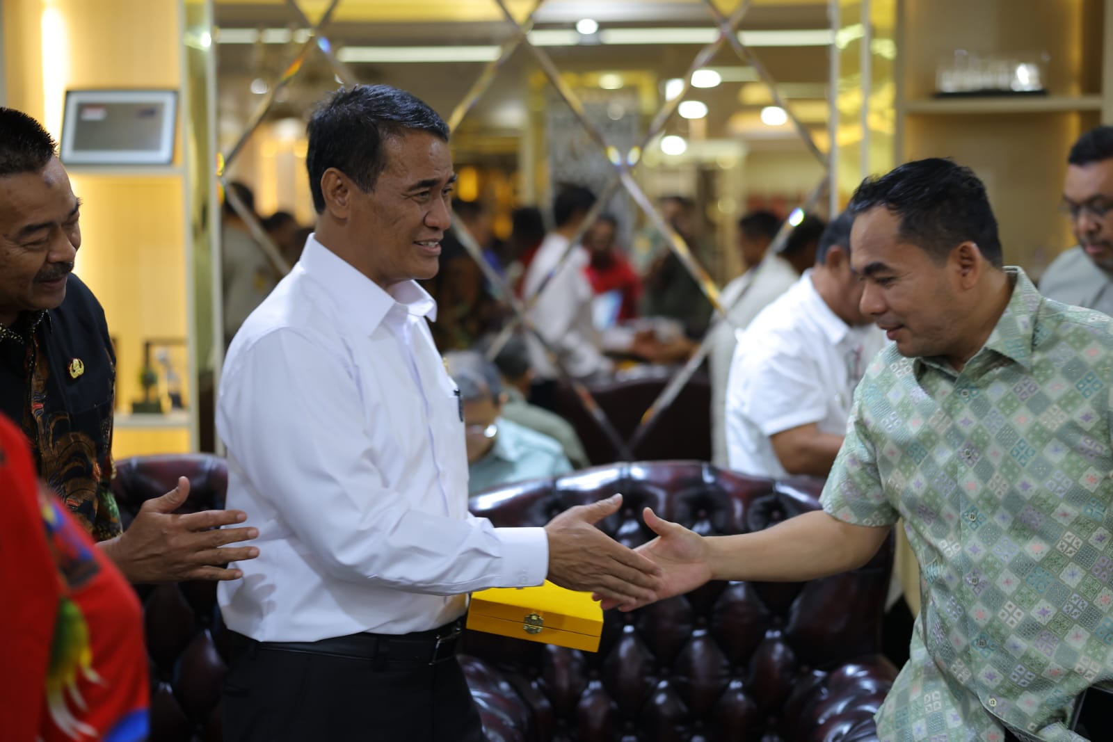 MERDEKABICARA.COM | JAKARTA – Wali Kota Lhokseumawe, Dr. Sayuti Abubakar, S.H., M.H., didampingi oleh Kepala Dinas Kelautan, Perikanan, Pertanian dan Pangan (DKPPP) Kota Lhokseumawe, Cut Elya Safitri, S.K.H., M.S.M., serta Kepala Bidang Pertanian dan Perkebunan Ira Handayani, S.TP., M.P., melakukan pertemuan dengan Menteri Pertanian Republik Indonesia, Andi Amran Sulaiman, di Ruang Kerja Menteri Pertanian, Jakarta, Kamis (9/10/2025). Pertemuan ini juga diikuti oleh sejumlah bupati dan wali kota lainnya dari berbagai daerah di Indonesia.