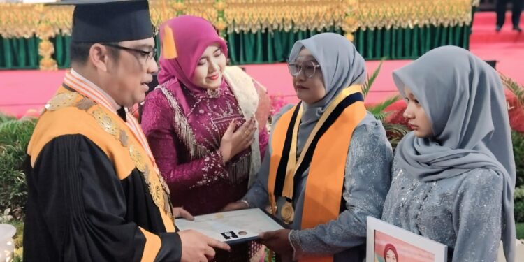 Lembaran ijazah itu berpindah tangan dengan penuh khidmat, bukan sekadar dokumen akademik, melainkan simbol cinta, perjuangan, dan ketulusan seorang anak yang telah menunaikan amanah ilmunya hingga akhir hayat.
