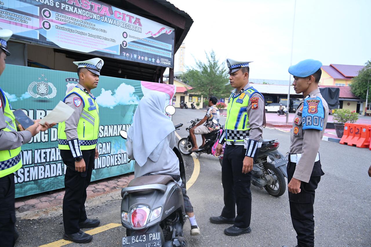 Kapolres Pidie AKBP Jaka Mulyana, SIK, MIK, melalui Kasat Lantas Polres Pidie AKP Aiyub Sami menyampaikan bahwa Operasi Keselamatan Seulawah 2026 bertujuan untuk meningkatkan kesadaran dan kepatuhan masyarakat terhadap peraturan lalu lintas guna menekan angka pelanggaran dan kecelakaan.