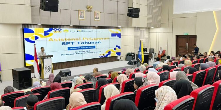 MERDEKABICARA.COM | LHOKSEUMAWE – Politeknik Negeri Lhokseumawe (PNL) melaksanakan kegiatan asistensi pelaporan Surat Pemberitahuan Tahunan (SPT) berbasis Coretax pada Selasa, 24 Februari 2026, bertempat di Ruang Theatre Lantai V Gedung TDC PNL. Kegiatan ini diikuti oleh unsur manajemen, dosen, dan tenaga kependidikan di lingkungan PNL sebagai bentuk komitmen bersama dalam mendukung kepatuhan perpajakan.