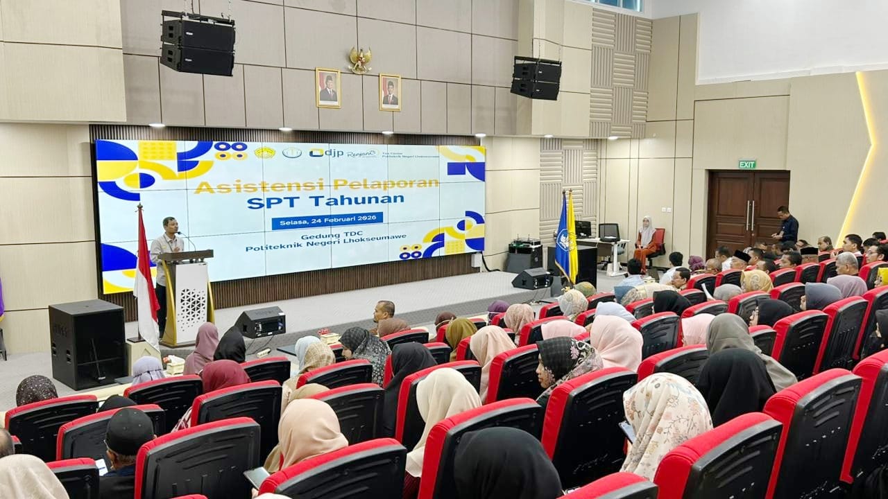 MERDEKABICARA.COM | LHOKSEUMAWE – Politeknik Negeri Lhokseumawe (PNL) melaksanakan kegiatan asistensi pelaporan Surat Pemberitahuan Tahunan (SPT) berbasis Coretax pada Selasa, 24 Februari 2026, bertempat di Ruang Theatre Lantai V Gedung TDC PNL. Kegiatan ini diikuti oleh unsur manajemen, dosen, dan tenaga kependidikan di lingkungan PNL sebagai bentuk komitmen bersama dalam mendukung kepatuhan perpajakan.