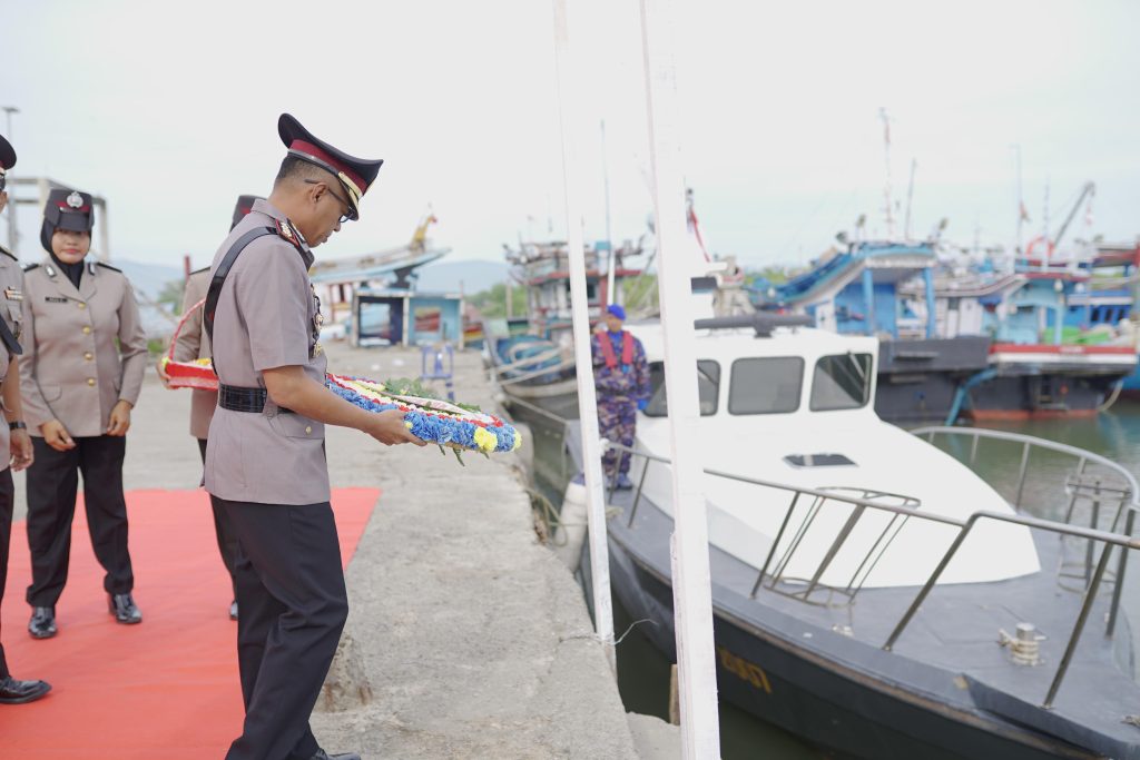 MERDEKABICARA.COM | PIDIE -Rangkaian kegiatan Hari Bhayangkara Ke-78 tahun 2024, Polres Pidie melaksanakan upacara Tabur Bunga di Dermaga Mako Satpolairud…