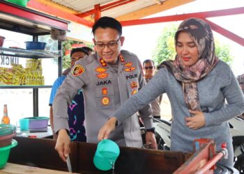 MEREEKABICARA.COM | PIDIE - Kapolres Pidie AKBP Jaka Mulyana, SIK, MIK bersama Ketua Bhayangkari Cabang Pidie. Ruri Jaka mengunjungi warung ...