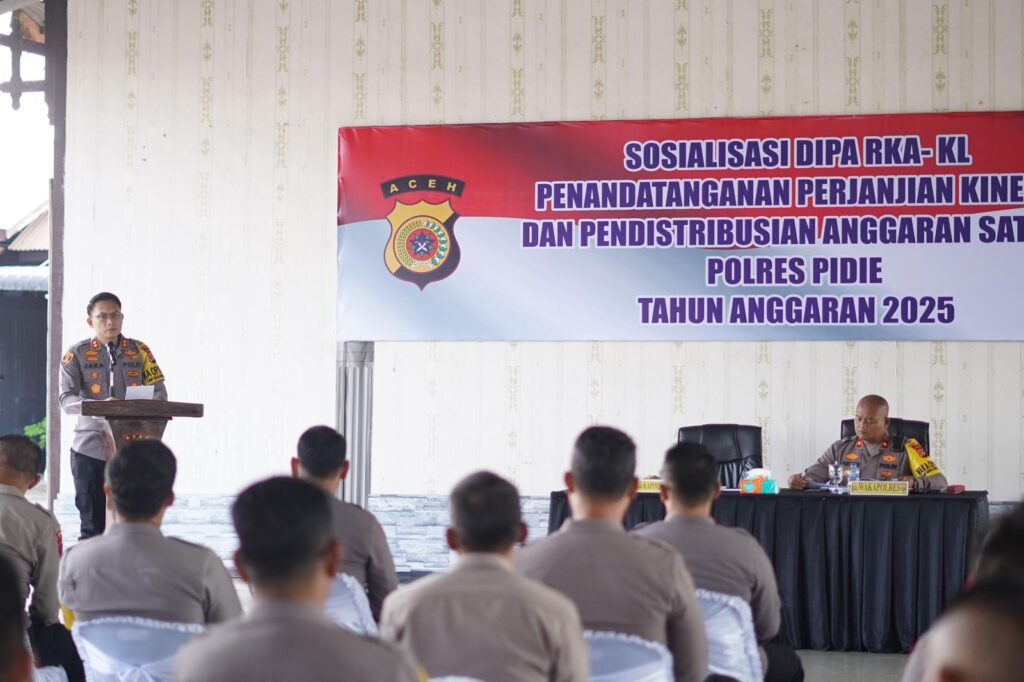 MERDEKABICARA.COM | PIDIE - Polres Pidie menggelar acara Sosialisasi Daftar Isian Pelaksanaan Anggaran (DIPA) dan Rencana Kerja dan Anggaran Kementerian/Lembaga…