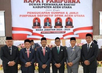 MERDEKABICARA.COM | ACEH UTARA -Empat Pimpinan definitif Dewan Perwakilan Rakyat Kabupaten Aceh Utara diambil sumpah yang berlangsung di Gedung DPRK ...