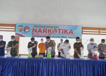 MERDEKABICARA.COM | PIDIE - Polres Pidie Polda Aceh memusnahkan barang bukti narkotika jenis sabu-sabu dan ganja di Mapolres Pidie, Rabu ...