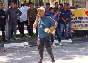 MERDEKABICARA.COM | ACEH UTARA -Seusai menggelar demonstrasi di gerbang utama PT Pupuk Iskandar Muda (PIM), Ketua Umum Komunitas Gusuran Industri ...