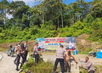 MERDEKABICARA.COM | PIDIE - Polsek Geumpang Polres Pidie bersama Koramil 17 Geumpang dan masyarakat setempat melaksanakan pemasangan spanduk himbauan Stop ...