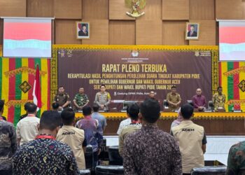 MERDEKABICARA.COM | PIDIE - Kapolres Pidie AKBP Jaka Mulyana, SIK, MIK menghadiri rapat pleno terbuka rekapitulasi hasil penghitungan perolehan suara ...